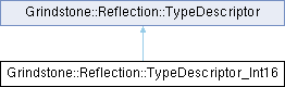 Inheritance diagram for Grindstone::Reflection::TypeDescriptor_Int16: